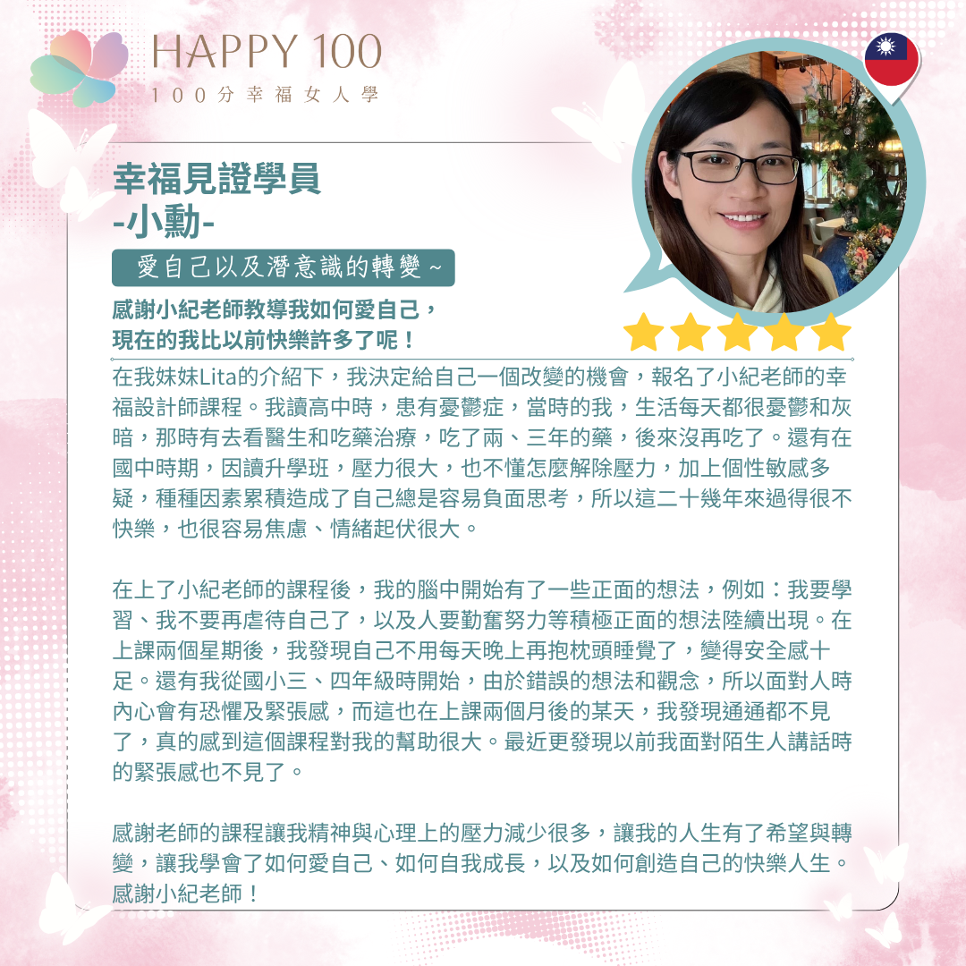 在參與《100分幸福女人學》課程,以及 21 天鏡子練習後,