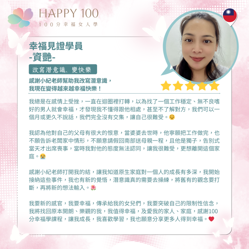 當她改寫潛意識後,情感不再受困,人生開始變得快樂